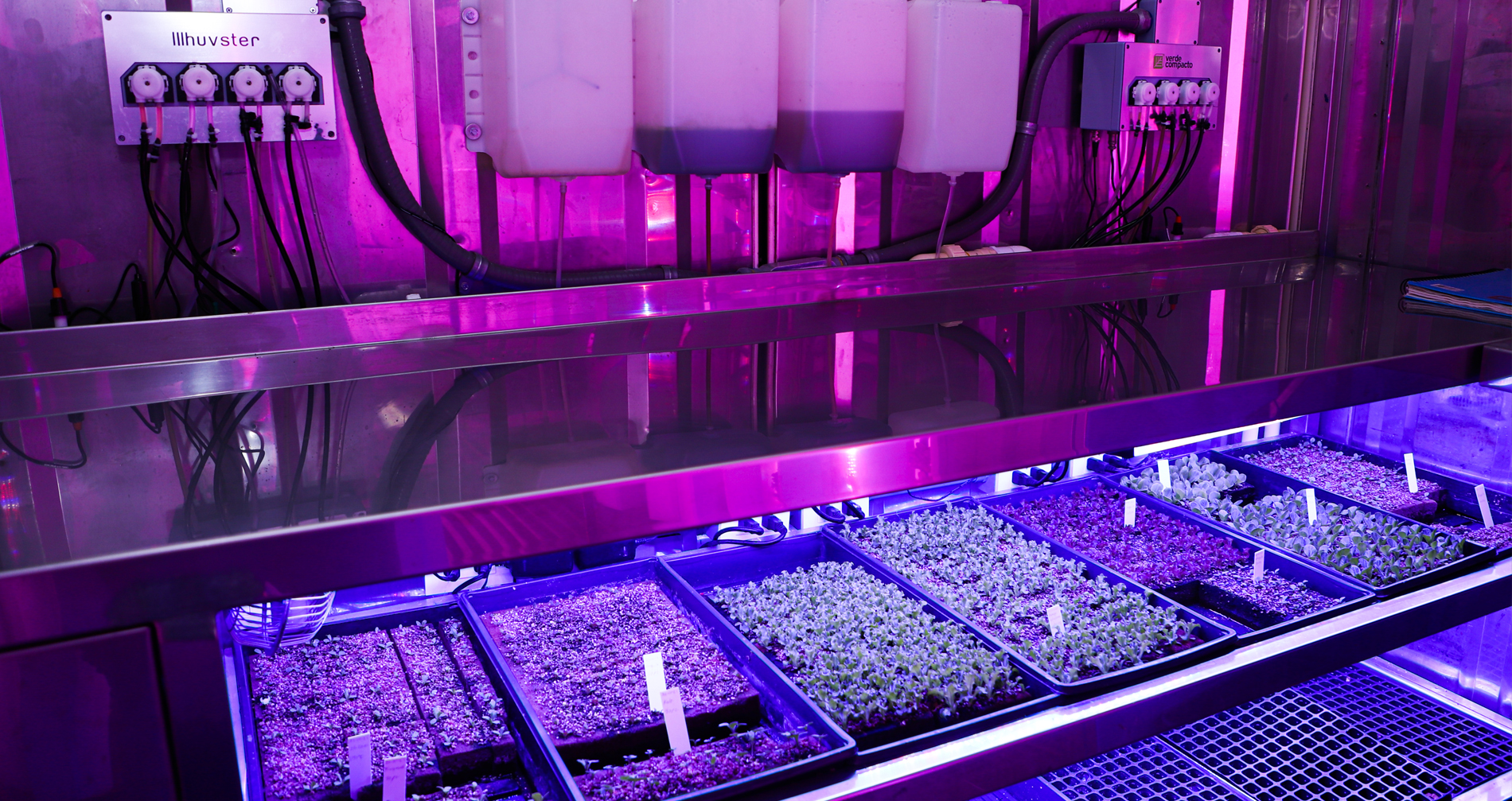 Usamos luces LED para crear una receta de luz específica para cada planta, dándoles exactamente el espectro, la intensidad y la frecuencia que necesitan para la fotosíntesis de manera más eficiente en energía posible. Esta iluminación diseñada nos permite controlar el tamaño, la forma, la textura, el color, el sabor y la nutrición con una precisión nítida y una mayor productividad.