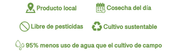 Somos una marca mexicana de vegetales y microgreens hidropónicos producidos verticalmente en la primera granja indoor automatizada dentro de un contenedor marítimo de 40ft en Latinoamérica. Ofrecemos productos frescos y de alta calidad de manera sustentable con el apoyo de energía solar.